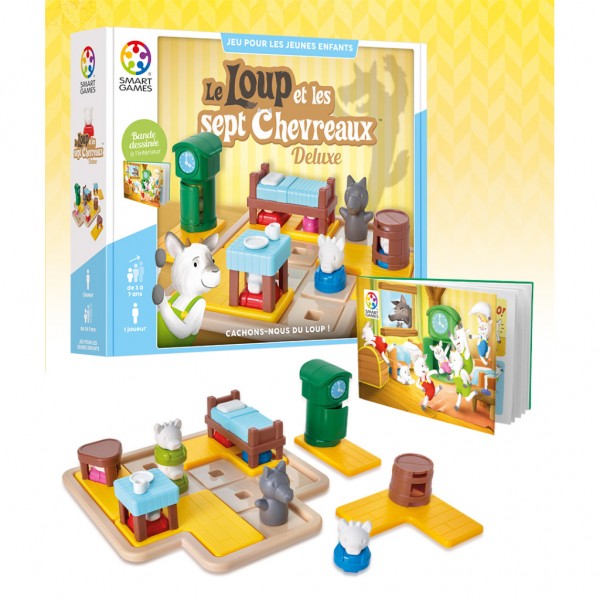 Ce jeu amusant aide les enfants de 3 à 7 ans à développer leur logique et leur esprit de déduction, ainsi que leurs capacités d’orientation et de reconnaissance des formes. Résolvez les 48 défis et plongez dans l’histoire du loup et des chevreaux avec le magnifique livre illustré inclus.