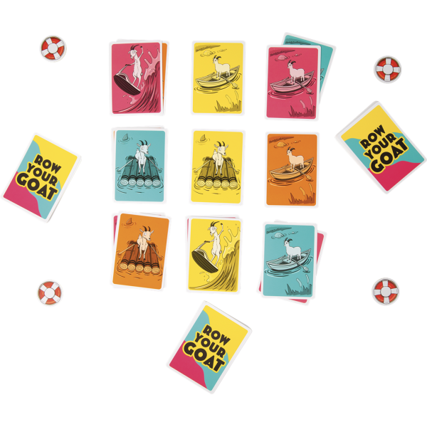 Dès qu’une ligne, colonne ou diagonale affiche 3 cartes avec la même couleur ou le même type d’embarcation, tous les joueurs doivent se jeter sur les bouées de sauvetage disposées autour de la grille. Il y a toujours une bouée de moins que de joueurs… et celui qui reste les mains vides se noie sous les cartes supplémentaires !