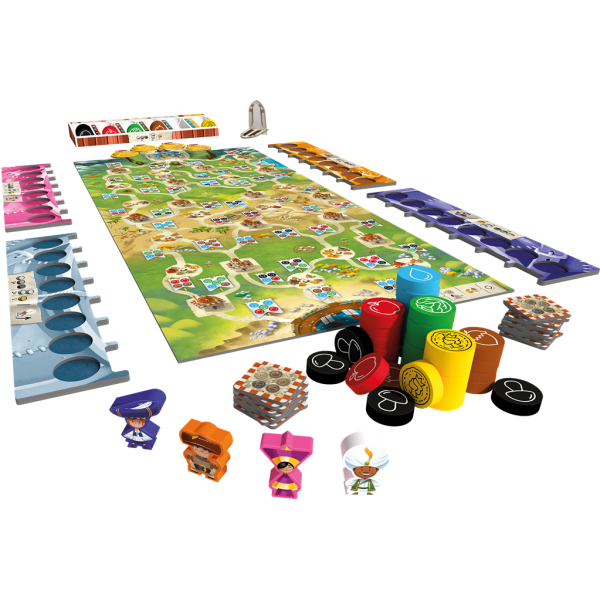 Dans cette adaptation familiale du célèbre jeu Splendor, chaque joueur collecte des ressources (eau, chou, pomme…) qu’il utilise ensuite pour progresser sur le plateau. Les villes permettent de gagner des ressources permanentes, tandis que les villages offrent l’opportunité de rejouer. Choisissez la meilleure stratégie pour atteindre les Portes du Palais avant leur fermeture : une parfaite initiation au jeu de société pour les enfants.