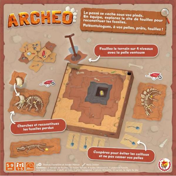 Coopérez pour découvrir les vestiges du passé avec votre pelle-ventouse. Creusez sur 4 niveaux, reconstituez vos découvertes et tentez d’obtenir 10 étoiles. Mais attention, débarrassez-vous de vos cailloux avant qu’ils ne cassent votre pelle. A vos pelles, prêts ? Fouillez !