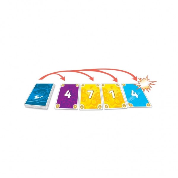 Dans Bango, marquez un maximum de points. Créez jusqu’à trois suites de cartes devant vous en révélant des cartes une par une. Mais attention : allez trop loin et vous risquez une explosion qui compromettra votre plan ! À la fin de la partie, votre score dépendra de la longueur de vos suites et des couleurs dominantes. Ce jeu dynamique et accessible mêle tension, réflexion et fun pour des parties