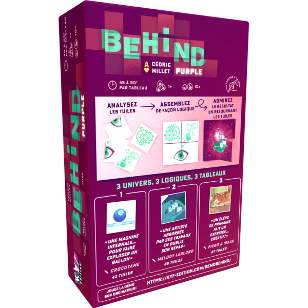 Découvrez Behind : Purple, la seconde boîte de Behind, le jeu coopératif de déduction dont l'originalité et l'ingéniosité ont été récompensées d'un As d'or Initié en 2025. Embarquez pour 3 nouvelles enquêtes, avec chacune leur logique et leur univers : "la Machine Infernale" de Crocotame, "Le Repas " de Melody Leblond et enfin "Le Cahier" de Pierô et Isaak.