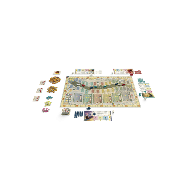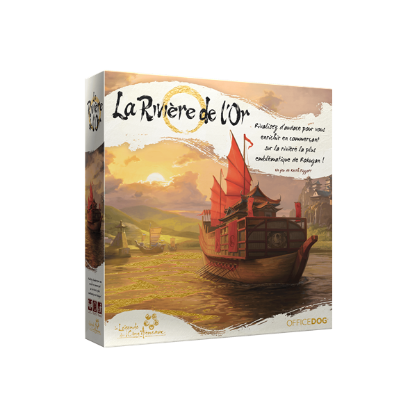 Dans La Rivière de l’Or, vous devrez élaborer la meilleure stratégie pour accumuler le plus de points de victoire en construisant votre empire commercial, navigant sur la rivière et développant votre influence auprès des nobles de la région. À chaque tour, votre dé vous présente trois opportunités uniques, mais vous ne devrez en retenir qu’une : vous pourrez soit développer votre empire commercial en construisant des bâtiments sur la berge, soit naviguer vers l’embouchure de la rivière pour charger vos soutes d’or et de marchandises, soit remplir un juteux contrat avec un client influent.