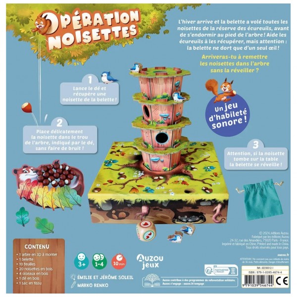Oh non, l’hiver arrive et la belette a volé toutes les noisettes des écureuils avant de s’endormir au pied de l’arbre ! Aide vite les écureuils à récupérer toute leur réserve, mais attention, la belette ne dort que d’un seul œil ! Arriverez-vous à remettre toutes les noisettes dans l’arbre sans la réveiller ?