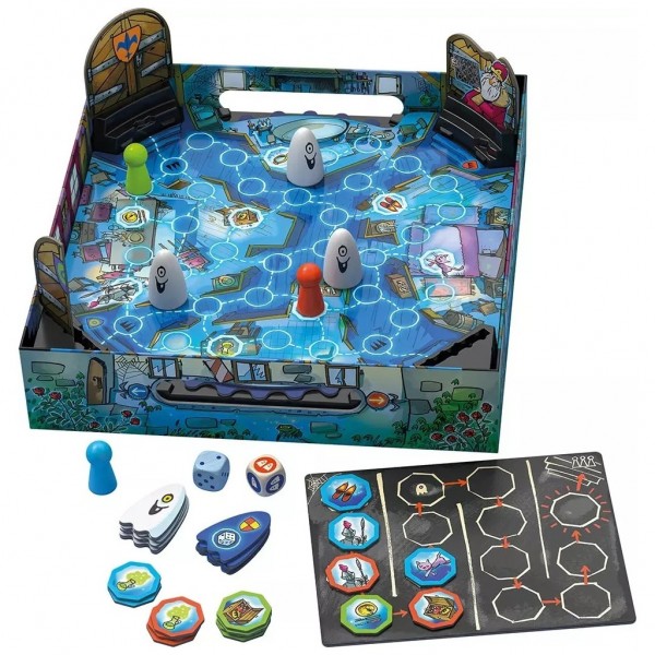 Les trois magiciens se tiennent, émerveillés, devant les énormes portes du vieux château, qui viennent de s'ouvrir comme par la main d'un fantôme... Déplacez-vous dans un château hanté pour collecter des objets tout évitant les fantômes ! Suspense et complicité familiale garantis !