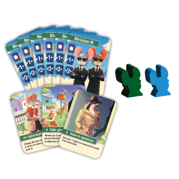 Agent Avenue – Division M est une extension passionnante, qui introduit un tout nouveau type d'agent : les souris de la Division M. Ces agents rusés créent une zone dangereuse autour de votre espace de jeu, ajoutant ainsi une nouvelle dimension stratégique, du suspense et du piquant à chaque partie d'Agent Avenue.